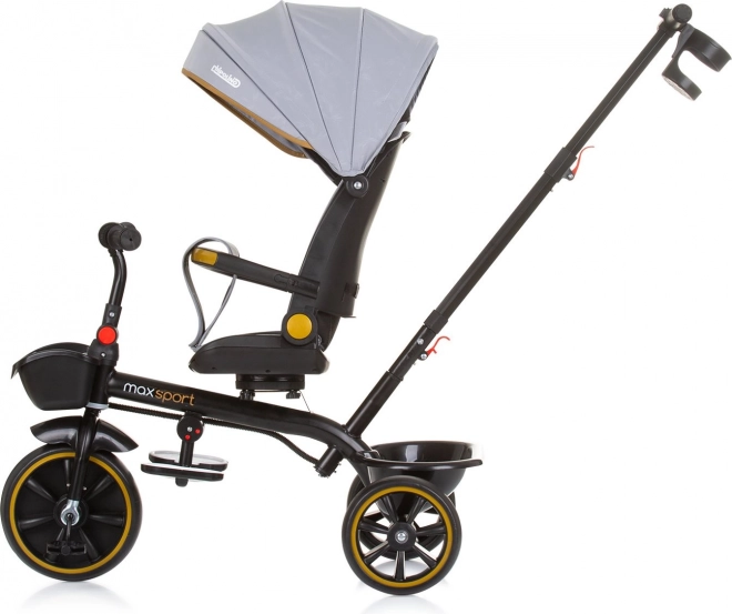 Trójkołowy rowerek Chipolino Max Sport 2w1 został zaprojektowany z myślą o maksymalnym komforcie i bezpieczeństwie. Dzięki obracanemu o 360° siedzisku możesz wozić dziecko przodem lub tyłem do kierunku jazdy, a gdy będzie gotowe, łatwo przejdzie do samodzielnej jazdy z pedałami. Szerokie, miękko wyściełane siedzisko z 2 pozycjami nachylenia, pasy bezpieczeństwa i zdejmowany pałąk zapewniają wygodę i pewność.