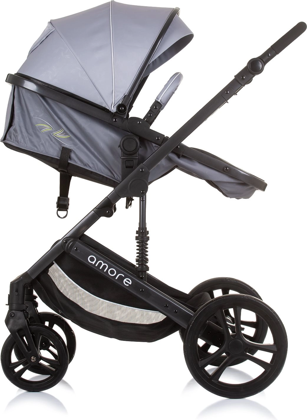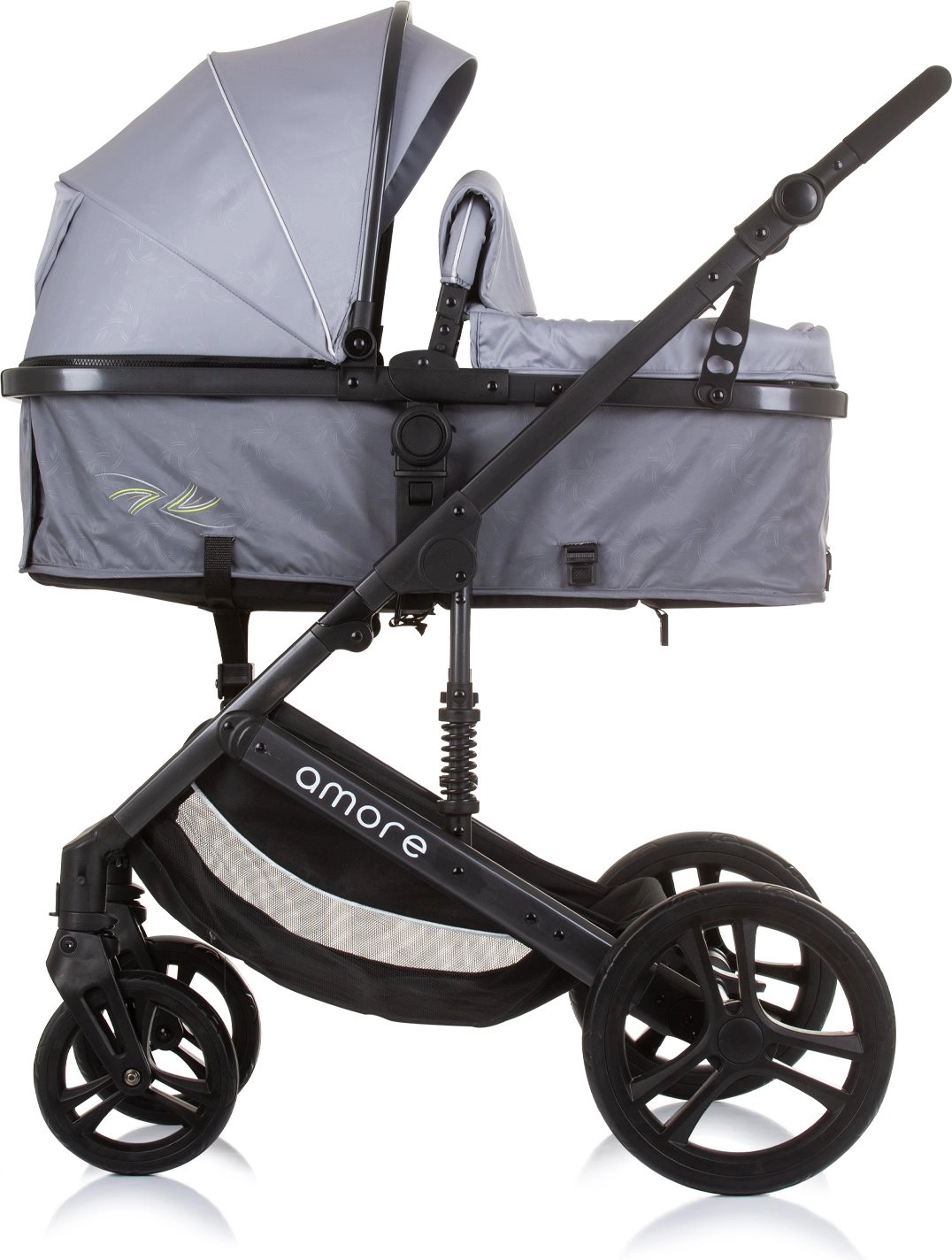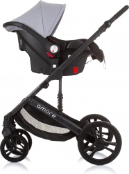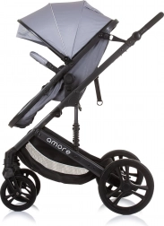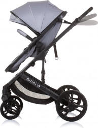 Uniwersalny wózek Amore 2w1 łączy wersję gondolową i spacerową w jednym rozwiązaniu na codzienne spacery i dłuższe wycieczki. Dzięki amortyzowanej ramie, dużym zdejmowanym kołom i regulowanemu wysokościowo prowadzeniu zapewnia komfort dziecku i rodzicom. Siedzisko można ustawić w 3 pozycjach i obrócić przodem lub tyłem do kierunku jazdy.
