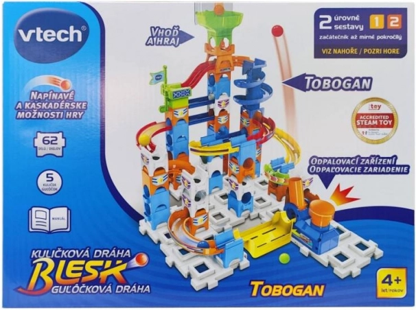 Odkryj zabawę z torem kulkowym Błysk – kreatywną konstrukcją, która oferuje nieskończone możliwości budowy, szybkie zjazdy jak na zjeżdżalni oraz rodzinne współzawodnictwo. Tor można łączyć z innymi zestawami, w zestawie znajduje się kolorowa instrukcja, 62 elementy oraz 5 kulek do natychmiastowej zabawy.