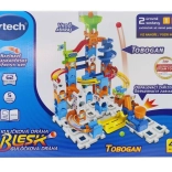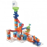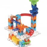 Wielopoziomowe rampy, spirale i leje zapewniają płynny i szybki ruch kulek – idealny do emocjonujących wyścigów.