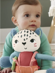 Pluszowa panterka FISHER-PRICE Planet Friends została zaprojektowana z myślą o delikatnej stymulacji sensorycznej najmłodszych. Kontrastowe wzory przyciągają uwagę, miękkie tekstury i uszka zachęcają do poznawania przez dotyk, a szeleszczące „buciki” skłaniają do ściskania i słuchania. Długie nóżki, paski oraz przesuwany kółek motywują dzieci do chwytania, pociągania i treningu małej motoryki.