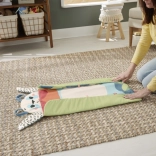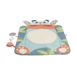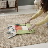 Mata wykonana jest z tkaniny zawierającej 90% plastiku z recyklingu i dostarczana w opakowaniu z certyfikatem FSC. Dzięki sprytnemu rozwiązaniu łatwo ją zwiniesz, zabezpieczysz „łapkami” i zabierzesz ze sobą. Odpinane zabawki można łatwo przypiąć do pętelek, więc zabawa jest zawsze świeża i angażująca.