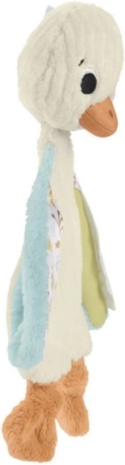 Urocza i mięciutka sensoryczna gęś marki Fisher-Price uspokaja maluszka w domu i w podróży. Ma różne faktury na skrzydełkach do poznawania dotykiem i delikatnie dzwoni przy potrząsaniu, subtelnie stymulując słuch. Jest lekka, milutka i można ją prać w pralce – idealna pierwsza przytulanka do rączek.