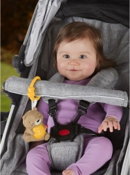 Praktyczny klips z motywem pszczółki umożliwia bezpieczne mocowanie i używanie w podróży, w wózku i w samochodzie.