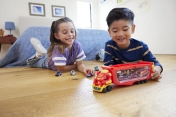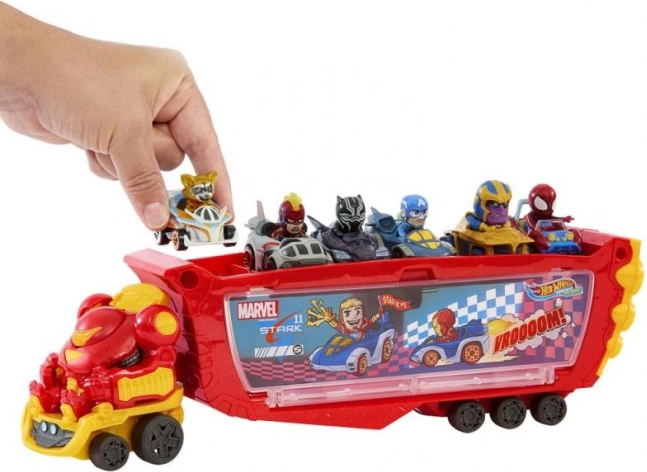 Dzieci mogą odłączyć przednią kabinę i bawić się nią osobno. Po uniesieniu hełmu odsłania się nierozłączna figurka Tony’ego Starka na fotelu kierowcy, która rozwija opowieści i kreatywne scenariusze. Transporter mieści aż 10 autek Hot Wheels RacerVerse lub standardowych modeli Hot Wheels w skali 1:64.