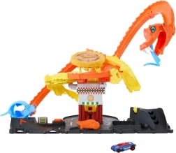 Stań do walki z groźną kobrą w pizzerii i uratuj miasto HOT WHEELS jak bohaterowie z serialu „Let’s Race”! Ten dynamiczny zestaw oferuje trzy losowe trasy, efektowne pułapki i widowiskowe elementy kaskaderskie. Emocjonujące przeszkody z kobrą, 3 możliwe kierunki jazdy oraz możliwość połączenia z innymi zestawami Hot Wheels City gwarantują nieskończoną zabawę. W zestawie znajduje się 1 metalowy resorak.