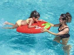 Żywy kolor i uroczy truskawkowy motyw zachęcają dzieci do ruchu w wodzie i zmieniają trening w zabawę. Deska jest łatwa do przenoszenia, mieści się w plecaku, a dzięki dołączonej łatce naprawczej przetrwa nawet bardziej wymagające lato.