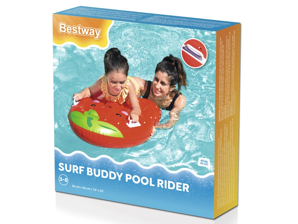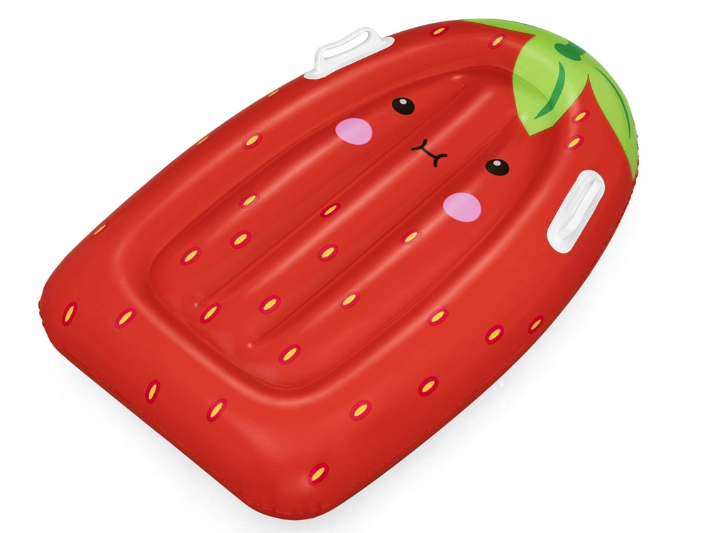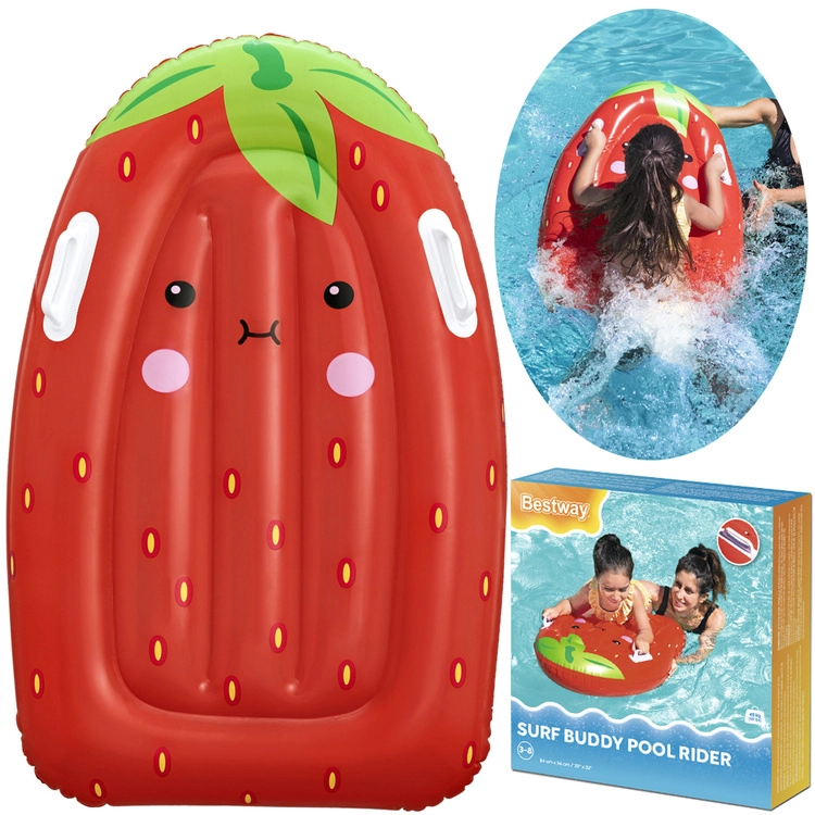 Lekka i stabilna dmuchana deska BESTWAY dla dzieci w wieku 3–8 lat pomaga w pierwszych krokach w wodzie. Dzięki dwóm bocznym uchwytom zapewnia pewność, równowagę i bezpieczeństwo podczas nauki pociągnięć i kopnięć. Wesoły motyw truskawki oraz ergonomiczny kształt wspierają prawidłowe ułożenie ciała i wygodne użytkowanie w basenie i nad morzem.