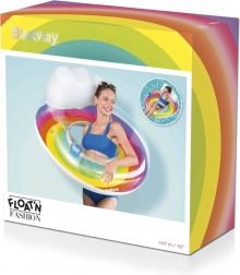Stylowe tęczowe koło BESTWAY jest idealne do basenu, jeziora i na plażę. Dzięki zintegrowanemu zagłówkowi z wygodnym podparciem głowy zapewnia prawdziwy relaks na tafli wody, a praktyczny uchwyt na kubek trzyma napój zawsze w zasięgu ręki.