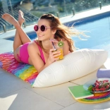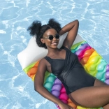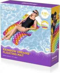 Tęczowy dmuchany materac BESTWAY to idealny wybór na beztroskie chwile na wodzie. Dzięki wysokiej jakości PVC jest odporny na uszkodzenia i działanie słońca, a liczne komory powietrzne zapewniają świetną stabilność na tafli. Zintegrowana poduszka podtrzymuje głowę i gwarantuje wygodne opalanie oraz dłuższy relaks.