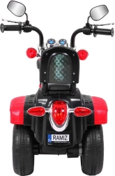 Stylowy dziecięcy elektryczny motocykl chopper NightBike oferuje realistyczne wrażenia z jazdy dla małych kierowców. Dzięki trzem kołom jest stabilny, ma wygodne siodełko i przednie światło LED. O zabawę dba panel audio z melodiami i wejściem AUX, a silnik RS-380 na 6 V oraz bieg wsteczny zapewniają łatwe sterowanie i bezpieczną jazdę.