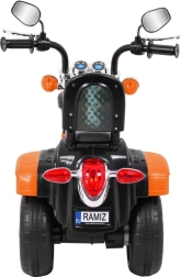 Podaruj dzieciom ich własny motocykl – Chopper NightBike zachwyca wyrazistym designem i bezpieczną trójkołową konstrukcją dla pewnej jazdy. Mocny silnik RS-380 na 6 V i akumulator 6 V/4,5 Ah zapewniają płynny start i niezawodną pracę do zabawy na podwórku i chodniku.