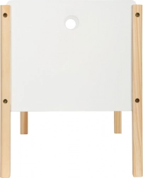 Eleganckie połączenie neutralnej bieli i naturalnego drewna sprawia, że to stabilne łóżeczko stanie się stylowym dodatkiem do każdego pokoju dziecięcego lub przestrzeni dziennej.