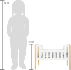 To nowoczesne łóżeczko dla lalek, zaprojektowane w skandynawskim, linearnym stylu, to doskonały wybór do usypiania lalek i pluszowych zabawek. Wysokiej jakości wykonanie obejmuje zaokrąglone krawędzie i masywne drewniane elementy, co zwiększa trwałość i bezpieczeństwo. W zestawie znajduje się dwustronna pościel z dużą kołdrą, zapewniająca wygodny sen także większym lalkom. Podwyższona powierzchnia do leżenia dla lalek oferuje ergonomiczne wrażenia z zabawy.