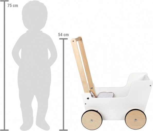 Wózek dla lalek Little Button łączy nowoczesny design z wysokiej jakości materiałami, które są całkowicie bezpieczne dla dzieci. Dzięki neutralnym kolorom pasuje do każdego dziecięcego pokoju i oferuje świetną okazję do zabawy rozwijającej kreatywność i interakcje społeczne.