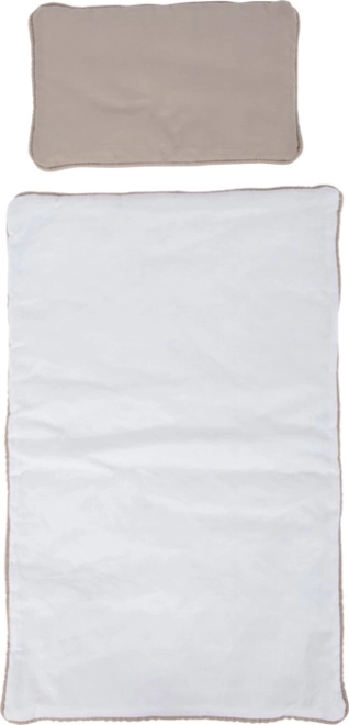 Dwustronna pościel w delikatnych kolorach z dużą kołderką zapewnia wygodę lalkom lub pluszowym zwierzątkom.