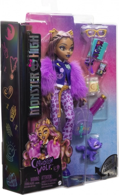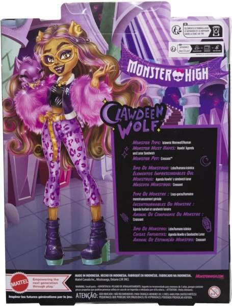 Odkryj Clawdeen Wolf w odważnej fioletowej stylizacji, która potwierdza jej wyrafinowane wyczucie mody. Dzięki ruchomym stawom łatwo ustawisz ją w różnych pozach i stworzysz własne, potwornie świetne historie. W zestawie jest także jej wierny pupil Crescent, gotowy na niekończące się przygody.