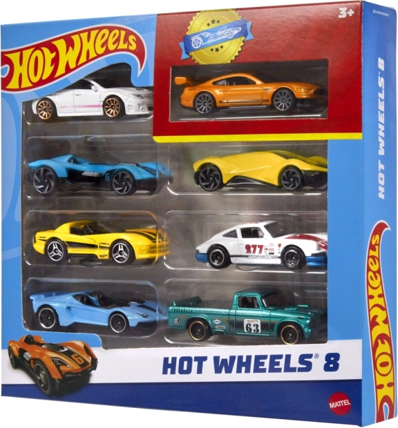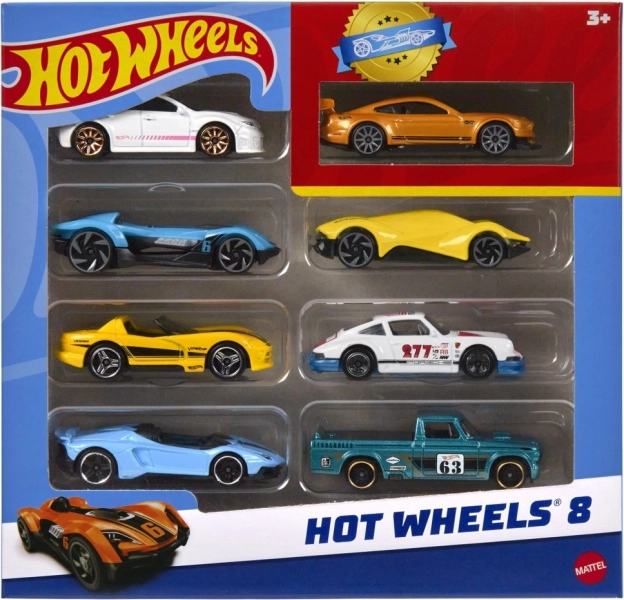 Zestaw samochodzików 8 szt. HOT WHEELS to idealny start lub rozszerzenie kolekcji. Autka w skali 1:64 zachwycają realistycznym stylem, wyrazistymi kolorami i wysoką jakością wykonania, gwarantując długą zabawę. W każdym opakowaniu znajdziesz jeden ekskluzywny model, którego nie kupisz osobno.
