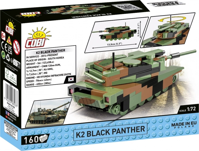 K2 Black Panther to nowoczesny czołg podstawowy opracowany w Korei Południowej, wyróżniający się połączeniem siły ognia, mobilności i zaawansowanych technologii. Ten mini zestaw w skali 1:72 wiernie oddaje charakterystyczne cechy prawdziwego pojazdu, a po złożeniu ma około 13,5 cm długości.