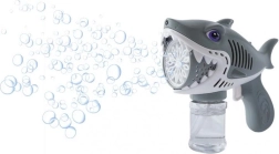 Pistolet ma design w kształcie szarego rekina, co dodaje zabawie nowy wymiar. Łatwy do trzymania z przezroczystym pojemnikiem na płyn do baniek.