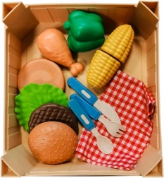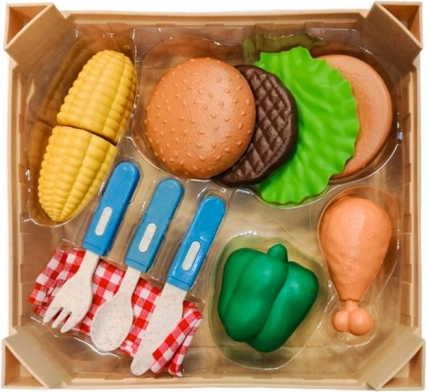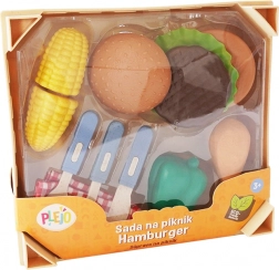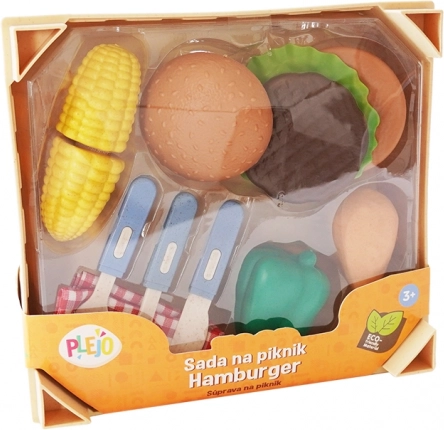 Zestaw piknikowy Plejo jest idealny dla wszystkich małych kucharzy, którzy chcą poczuć autentyczne wrażenia podczas przygotowywania własnego hamburgera. Zawiera szeroki wybór plastikowych imitacji produktów spożywczych, w tym bułkę do hamburgera, mięso, warzywa i akcesoria.