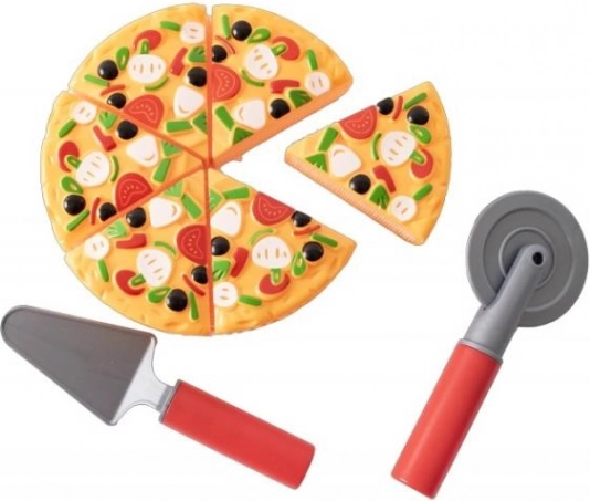 - W zestawie znajduje się pizza na rzep, którą dzieci mogą kroić.