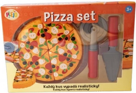 Odkryj zabawę z zestawem do pizzy PLEJO dla dzieci. Zawiera pizzę na rzep, nóż i łopatkę. Idealny dla małych kucharzy!
