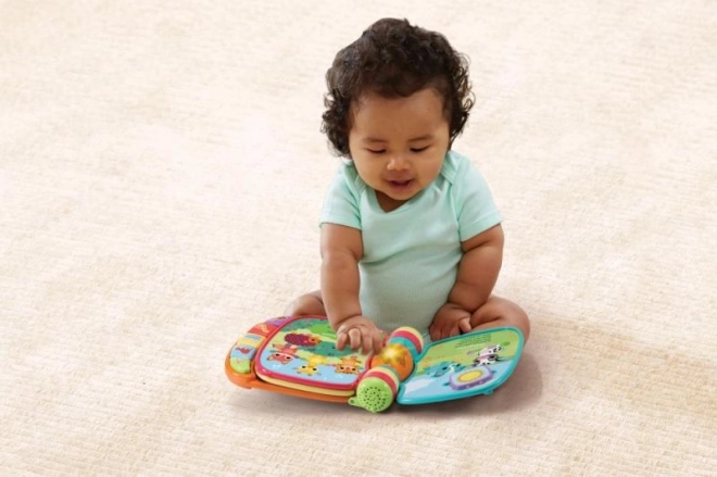Odkryj magiczny świat muzyki z Vtech książeczką muzyczną ze zwierzętami, która przynosi niekończącą się zabawę dla najmłodszych! Idealna dla dzieci od 6 miesięcy, ta książeczka łączy muzykę, piosenki i zabawne dźwięki, które z pewnością przyciągną uwagę i nauczą rozpoznawać kolory oraz nazwy instrumentów.