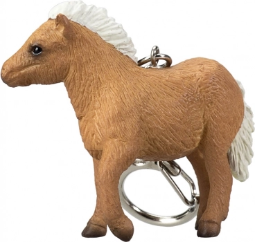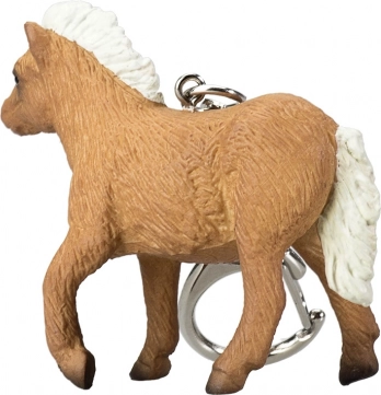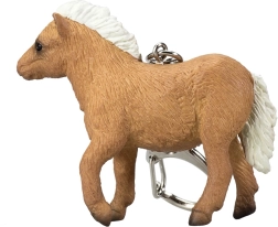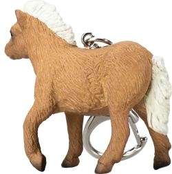 Brelok z wysoko detaliczną miniaturą szetlandzkiego źrebięcia.