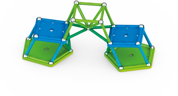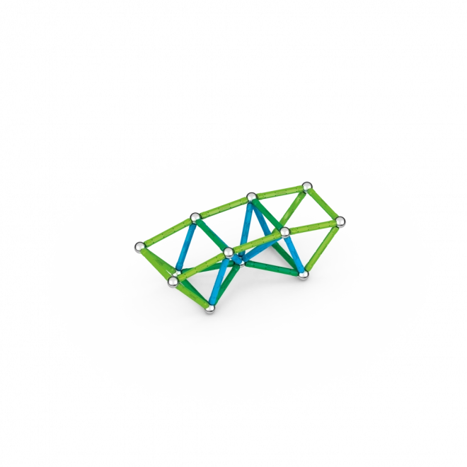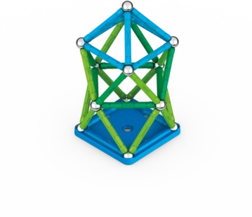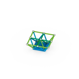 Zestaw oferuje magnetyczne pałeczki i kulki zapewniające wytrzymałość i stabilność każdej konstrukcji. Zawiera dwie specjalne kwadratowe oraz dwie pięciokątne podstawy.