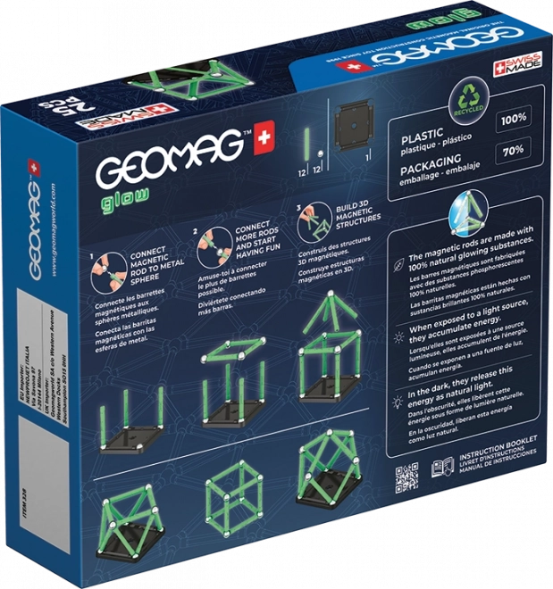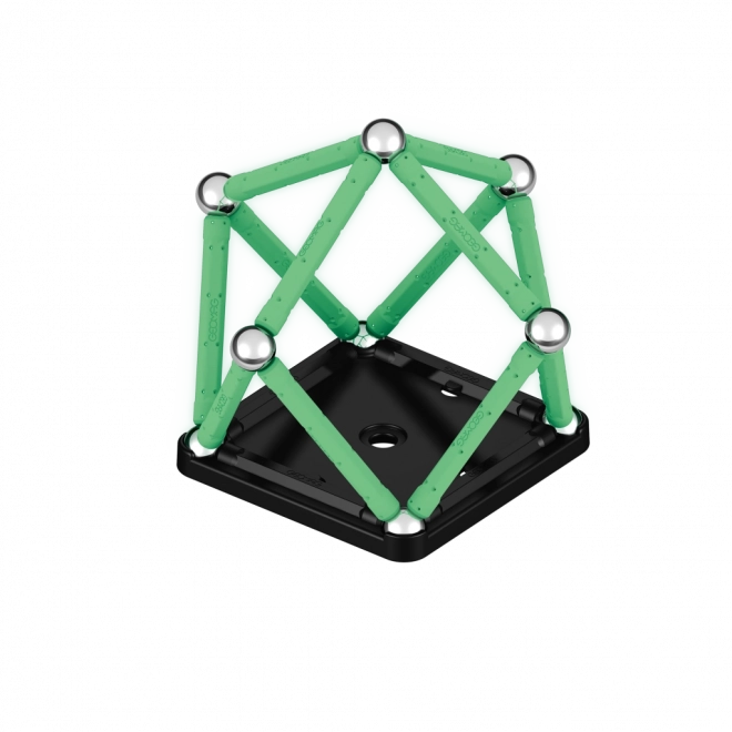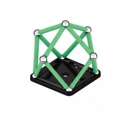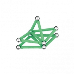 Świecąca w ciemności magnetyczna układanka przyniesie nowy wymiar zabawy. Zestaw wykonany w 100% z plastiku z recyklingu z pewnością nie zginie w ciemności! Opakowanie zawiera łącznie 25 elementów – 12 świecących prętów, 12 kulek oraz jedną stabilną, czarną podstawę w kształcie kwadratu. Przeznaczone dla dzieci od 3 lat.