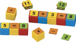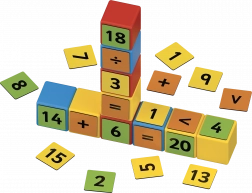 Dwustronne klipsy z liczbami i znakami pozwalają układać proste i trudniejsze działania. Dzieci naturalnie trenują dodawanie, odejmowanie oraz podstawy mnożenia.