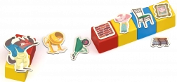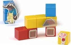 31 kolorowych klipsów z postaciami i scenami z Trzech małych świnek wspiera wyobraźnię, rozwój językowy oraz samodzielne opowiadanie.