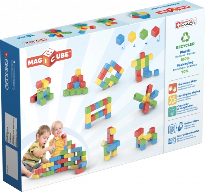 Geomag Magicube Creative to sprytna układanka dla małych odkrywców. Magnetyczne klocki łączą się z każdej strony, więc maluchy z łatwością tworzą figurki, wieże i proste kształty 3D. Kolorowe wykonanie zachęca do zabawy i nauki – dzieci naturalnie trenują koordynację ręka–oko, rozpoznawanie kolorów oraz podstawowe zasady konstruowania.