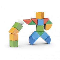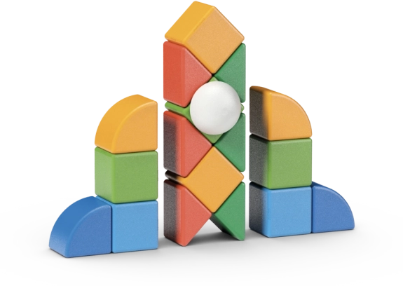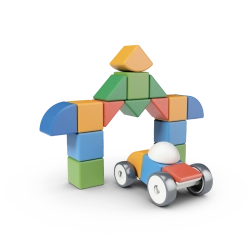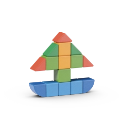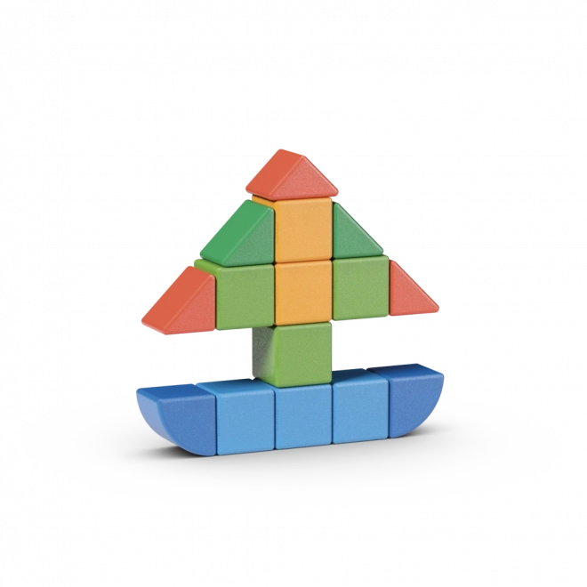 Duże, kolorowe elementy z zaokrąglonymi krawędziami są zaprojektowane dla małych rączek. Wspierają małą motorykę, koordynację ręka–oko oraz rozwój wyobraźni.