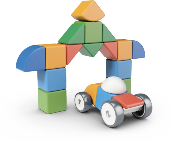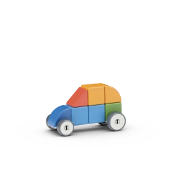 - 25 elementów – magnetyczne klocki, dodatkowe kształty oraz 4 kółka