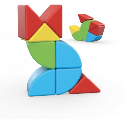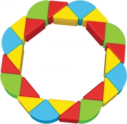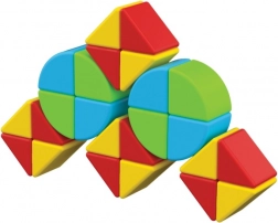 Magnetyczna układanka zawiera 16 półkostek i 8 wycinków w czterech kolorach. Połącz je z innymi kształtami z serii Magicube. Odpowiednie od 1 roku.