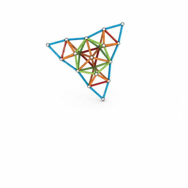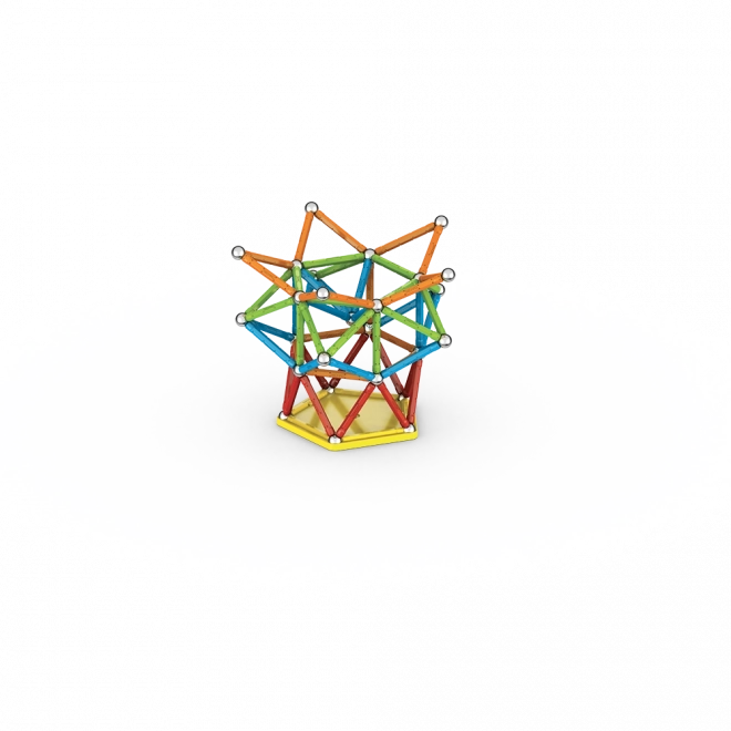 142 elementy, w tym magnetyczne pręciki, stalowe kulki i podstawki, umożliwią tworzenie mostów, wież oraz złożonych kształtów 3D, rozwijając wyobraźnię przy każdym dotyku.