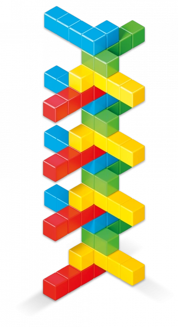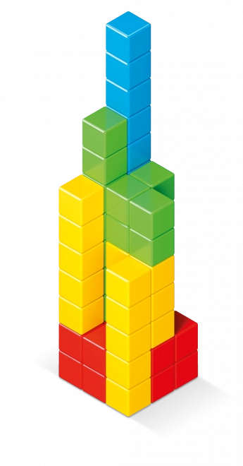 • 128 klocków w 4 kolorach: czerwony, żółty, zielony, niebieski