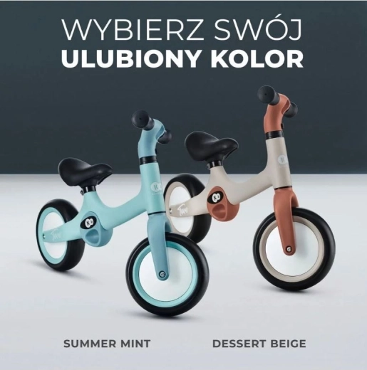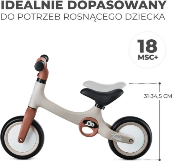TOVE waży zaledwie 2 kg. Rowerek wykonano z trwałych tworzyw PP i TPR – dzięki temu jest odporny na upadki, uderzenia i zarysowania.
