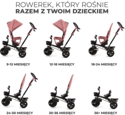 Dziecięcy trójkołowiec AVEO został zaprojektowany tak, aby rósł razem z Twoim dzieckiem. Nadaje się dla dzieci już od 9 miesięcy i oferuje 6 różnych konfiguracji, które łatwo dopasujesz do umiejętności dziecka. Trójkołowiec ma obracane siedzisko, praktyczny daszek, barierkę ochronną i regulowane pasy, co zapewnia bezpieczeństwo i komfort na każdym spacerze. Z AVEO zyskacie wieloletniego, wiernego towarzysza wycieczek.