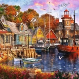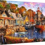 Kolorowa scena cichego portu wprowadza spokojną atmosferę i daje radość z układania, a po skończeniu sprawdzi się jako dekoracja.