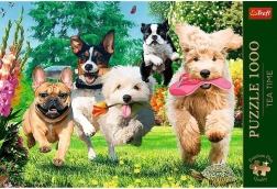 Odkryj pięknie wykonane puzzle z kolekcji Tea Time, które wciągną Cię w świat kolorów, emocji i radosnej energii. Wyrazisty motyw z psami w kwitnącym ogrodzie zachwyca detalami i nasyconymi barwami, dzięki czemu układanie to czysta przyjemność. Gotowa układanka o wymiarach ok. 68,3 × 48 cm doskonale nadaje się również do oprawienia w ramę.
