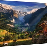 Delektuj się pięknym widokiem alpejskich szczytów, drewnianej chaty i zielonej doliny Lauterbrunnen – ikonicznego krajobrazu Szwajcarii – w szczegółowych puzzlach z kolekcji TREFL Premium Plus. Dzięki wysokiej jakości kartonowi i precyzyjnemu wykonaniu elementy gładko do siebie pasują i trzymają się nawet podczas przenoszenia złożonych fragmentów.