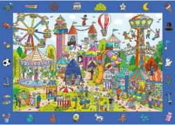 Wyrazista ilustracja z karuzelami, balonikami i postaciami zachwyci dzieci i zachęci do wielokrotnego układania oraz odkrywania detali.