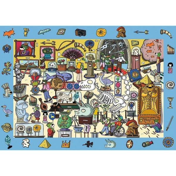 Te rysunkowe puzzle SPY GUY przedstawiają kolorową muzealną scenę, pełną drobnych szczegółów i zabawnych momentów. Po ułożeniu obrazka możesz zacząć tropić przedmioty pokazane na ramce – każde odnalezienie to małe zwycięstwo, które ucieszy zarówno dzieci, jak i dorosłych.