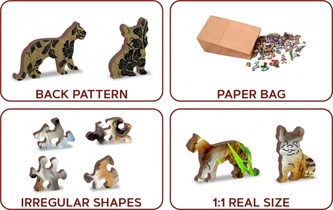Puzzle oferują obrazek po jednej stronie i powtarzający się wzór po drugiej, co tworzy świetne wyzwanie.