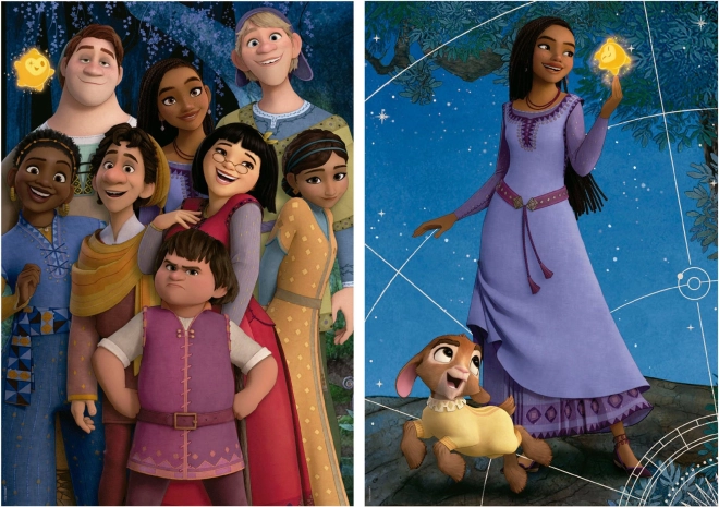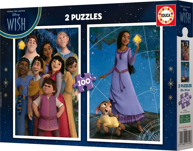 Zestaw dwóch puzzli marki EDUCA przynosi radość z układania w praktycznym formacie. Każda układanka ma 100 elementów i po ułożeniu mierzy około 28 × 40 cm, co jest idealnym rozmiarem do pokoju dziecięcego lub mniejszego biurka.
