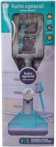 Ręczny odkurzacz z wymiennymi końcówkami. Odkurzacz jest na baterie i wydaje dźwięk zasysania. Każda gospodyni pokocha ten odkurzacz. Zawsze pod ręką.