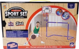 Zestaw wspiera rozwój koordynacji, precyzji oraz współpracy zespołowej. W komplecie znajdują się dwie piłki (piłka nożna 14 cm, piłka do koszykówki 12 cm) oraz pompka, więc można zacząć grać zaraz po złożeniu.